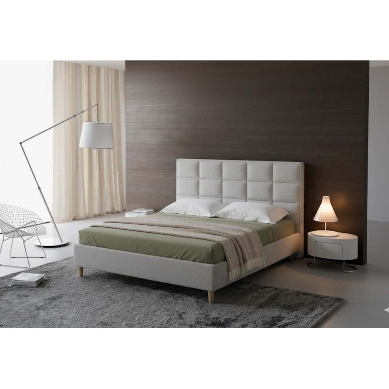 Доминантой модели Agata Plus является её впечатляющее изголовье. Вся его поверхность разделена на крупные, объемные квадраты, создающие эффект мягкой стеновой панели. Глубокая стяжка между элементами придает спинке выразительный 3D-рельеф и скульптурность. Этот дизайн не только визуально структурирует пространство спальни, задавая ему ритм, но и дарит невероятные тактильные ощущения. Мягкие "подушечки" квадратов обеспечивают идеальную, обволакивающую поддержку для спины во время отдыха полулежа.